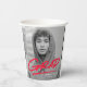 Modern graduation paper cups featuring the graduate's photo with "Grad" displayed in red, handwritten lettering with a dash below. Personalize the photo graduation paper cups by adding the graduate's name and graduation year. The design repeats on the back. The personalized graduation paper cups are perfect for both high school and college graduation parties!