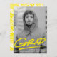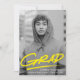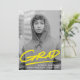 Trendy, modern graduation party invites featuring the graduate's vertical senior photo with "Grad" in bright yellow hand-lettering with an underline dash below. Personalize the front of the photo graduation party invitations by adding the graduate's name, school name, and graduation year. The invite reverses to display your graduation party details with a background of yellow and white dashed brushstrokes.