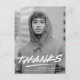 Modern graduation thank you postcards featuring the graduate's vertical photo with "Thanks" in white handwritten lettering with a dash below. Personalise the photo graduation thank you postcard by adding the graduate's name, school name, and graduation year. The back of the postcard displays your return address and thank you message.