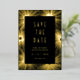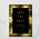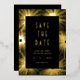Bold gold foil firework bursts make a powerful impact on black with this modern art deco wedding Save the Date invitation.