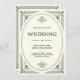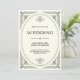 These glamourous wedding invitations feature a modern spin on classic art deco. An ornate, black geometric frame and ornamentation decorate an elegant ivory background for a dramatic, vintage wedding look.