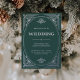These glamourous silver foil wedding invitations feature a modern spin on classic art deco. An ornate, silver geometric frame and ornamentation decorate an elegant rich festive green background for a dramatic, glamourous and vintage 1920's wedding look that is perfect for your Christmas holiday wedding. Add your photo to the back.