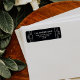 These glamourous wedding return address labels feature a modern spin on classic art deco. White geometric borders and ornamentation decorate an elegant dark onyx black background for a dramatic, vintage wedding look.