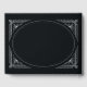 This glamourous wedding guest book features a modern spin on classic art deco. An ornate, white geometric frame and ornamentation decorate an elegant dark onyx black background for a dramatic, vintage wedding look.