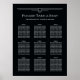 This glamourous wedding seating chart features a modern spin on classic art deco. An ornate, white geometric border and ornamentation decorate the top of an elegant dark onyx black background for a dramatic, vintage wedding look.