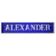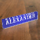 A blue and white desktop name plate for him.