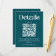 Modern Deep Teal Wedding Details QR Code Enclosure Card