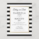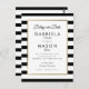 Featuring a classic black and white striped background, this elegant delay our date card features an elegant faux gold foil border framing your details set in modern typography. Designed by Thisisnotme©