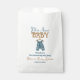 Celebrate the arrival of a little cowboy with this Blue Jean Baby Shower Favour Bag! This charming design features a watercolor denim baby bodysuit hanging on a hanger, perfect for a rustic or western-themed baby shower. The classic blue jean aesthetic adds a trendy and gender-neutral touch, making it ideal for celebrating a baby boy. Customise the details effortlessly to create the perfect theme for your special event.