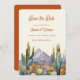 Modern Desert Cactus Photo Save the Date - Announce your love story with a touch of desert elegance and rustic charm! This enchanting "Save the Date" invitation captures the essence of romance against a breathtaking desert canvas. Imagine a sweeping desert landscape, where resilient cacti stand tall amidst a symphony of rugged mountains and delicate cactus blooms. The scene is bathed in the warm glow of sunlight, creating an ambiance that is both serene and stunning.