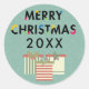 A pretty Christmas sticker with a modern style Typography design and gift box graphics. The outside reads "Merry Christmas 20XX" for you to change your preferred year
