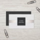 Clean and stylish professional design in black and white  colour scheme. Square black emblem on off white background.