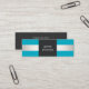 Modern Designer Silver Striped Turquoise and Black Mini Business Card