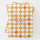 Enhance the joy of gift-giving with our Ochre Modern Diamond Chequered Wrapping Paper. It features a chequerboard pattern in yellow ochre with squares of pink, olive, and orange. A vibrant colour palette reminiscent of a summer tutti frutti feast. The geometric design (inspired by checkerboards and chessboards). The pack includes 3 different-sized checkers, allowing you to mix and match for birthday gifts.