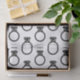 Modern diamond ring silhouettes in black patterned tissue paper.