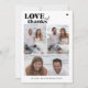 Love and thanks casual funny bold typography modern simple minimalist black and white wedding thank you card with 4 photos, hearts, and text template. Digital download available,