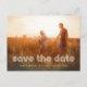 These on-trend, stylish wedding save the date postcards feature retro disco style typography as an overlay on one of your personal photos. The back has a neutral beige coloured background with matching earthy brown text, along with a scannable QR code to add your wedding website. A vintage look that is totally modern.