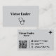 Present your medical profession with style using this sleek and professional doctor business card. The design features a clean grey background with bold black typography for the name Victor Ender and title Doctor. A minimalist black medical cross icon is placed in the top right corner, while the left side includes a scannable QR code for quick access to contact or profile information.