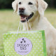 Modern and fun doggy bag thank you sticker for coming to dog pawty with dog paw prints.