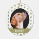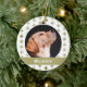 Modern Dog Pet Photo Floral Pattern Christmas Ceramic Ornament. Cute and modern design with green simple flower pattern. Add your photo and name and make a sweet keepsake for a dog owner.