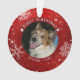 Commemorate your dog's FIRST CHRISTMAS with a keepsake ornament in red with white snowflakes and personalised with a photo and your text on the front and a full-bleed photo on the back of two-sided style ornaments. PHOTO TIP: For fastest/best results, choose a photo with the subject in the middle and/or pre-crop your image to a square shape BEFORE uploading. CHANGES: All text is editable to change the title or text font style by clicking CUSTOMIZE FURTHER. Contact the designer via Zazzle Chat or makeitaboutyoustore@gmail.com if you'd like this design modified or on another product.