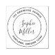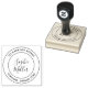 Modern Calligraphy Return Address rubber stamp featuring a round double border for your address in between it and name in a trendy calligraphy script in the centre that is easy to personalise. Now you never have to write your address again. Great for sending out letters.