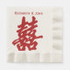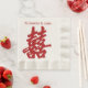 This Modern Double Happiness Napkins consist of the character "double happiness" in Chinese in red glitter, and customisable names.