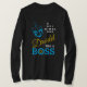 Modern, stylish DREIDEL LIKE A BOSS Hanukkah Long-Sleeved T-Shirt. The design shows a cyan blue dreidel and blue, yellow and white typography. In the top right hand corner, you can read the names of the four dreidel sides in a word puzzle format (HEI can be changed to HEY or HAY, if required). Inside the O of BOSS is a small Star of David. This could be your fun, ugly Hanukkah shirt to wear so you can show off your dreidel expertise in style during Hanukkah season. Ideal to buy for the whole family or group of friends. Choose from a wide selection of Hanukkah designs by Berean Designs. Also in navy blue.