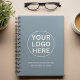 Modern Dusty Blue Business Logo & Text Promo Notebook