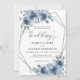 Modern Dusty Blue Chic Floral Silver Frame Wedding Invitation