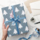 Modern Dusty Blue Christmas Tree Pattern Holiday Wrapping Paper