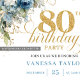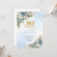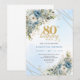 Modern Dusty Blue Floral Gold 80th Birthday Deluxe Invitation