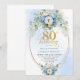 Modern Dusty Blue Floral Gold 80th Birthday Invite