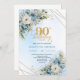 Modern Dusty Blue Floral Gold 90th Birthday Card