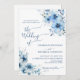 This modern invitation features graceful watercolor florals in soft dusty blue tones, balanced by clean, contemporary typography. Perfect for couples seeking a refined and romantic aesthetic with a fresh colour scheme.