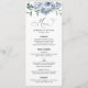 modern floral and script design with dusty blue watercolor flowers wedding menu card