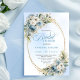 Modern Dusty Blue Flowers Gold Frame Bridal Shower Invitation