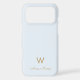 A modern, elegant monogram design with gold handwritten minimalist script typography and sans serif block typography on an elegant pale pastel dusty blue background. The monogram and name can be easily personalized.
