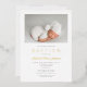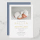 Personalised Modern Dusty Blue Gold Script Photo Boy Baptism Foil Invitation.