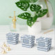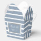 Modern custom dusty blue wedding favour boxes featuring white stripes on a dusty blue background. Easily personalise these dusty blue wedding favour boxes with your wedding details. Our modern dusty blue wedding favour boxes are perfect for your elegant dusty blue wedding party. These personalised thank you favour boxes can be customised to other occasions, such as bridal, or baby showers.