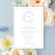 Modern Dusty Blue Leafy Crest Monogram Wedding Inv Invitation