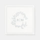 Modern Dusty Blue Leafy Crest Monogram Wedding Napkin
