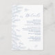 This exquisite wedding details card showcases an enchanting border of graceful, flowing dusty blue hand drawn botanical illustrations, creating a sense of natural elegance. The delicate script paired with clear, readable typography offers a sophisticated and inviting appeal. The soft blue and white colour palette evokes a feeling of calm and classic beauty, making it ideal for a refined and serene occasion.