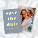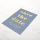 Personalized Modern Dusty Blue Photo Save The Date Gold Foil Invitation.