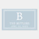 These personalised dusty blue rectangular stickers are perfect for a wedding, engagement party, bridal shower or rehearsal dinner favours or as an added detail to any item. The design features the trending dusty blue colour with simple, modern fonts. Customise them with your Initial, name and event date to make them one of a kind!