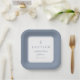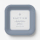 Modern Dusty Blue Religius Cross Boy Baptism Square Paper Plates.