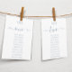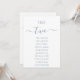 In the upper part, there is the table number written in a handwriting script and the word Table above, in smaller caps (hand letters). Under them, there are the 10 guest names, in similar hand letters. All text is dusty blue, the background is white.