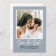 Announce your big day in style with this modern and elegant Save the Date invitation. This simple, minimalist Save the Date card is perfect for introducing your guests to your wedding day, and is sure to be treasured as a keepsake for years to come. Featuring photo of a romantic couple and classic dark typography in a dusty blue background you can personalised. The backside features a QR code guests can scan to visit your website to find more details about the big day. This simple but pretty design is perfect to show off your sense of style and to let your friends and family know that you are getting married.