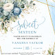 Elegant Dusty Blue Floral Sweet 16 Invitation