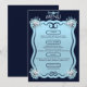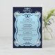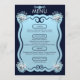 Your wedding feast deserves more than a boring list—and this menu card delivers visual flavour. Set against a luxe navy backdrop, light blue florals flirt from the corners like botanical confetti, creating a romantic-meets-modern vibe. A dreamy gradient frame—from soft bluish tones to dusty blue—wraps around your text like a watercolor hug.